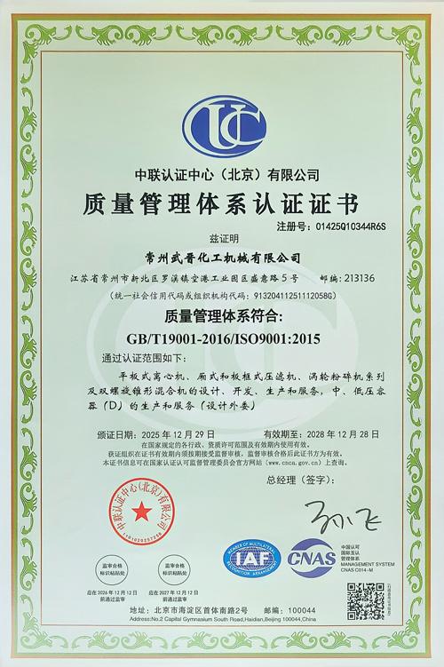 质量管理体系认证证书